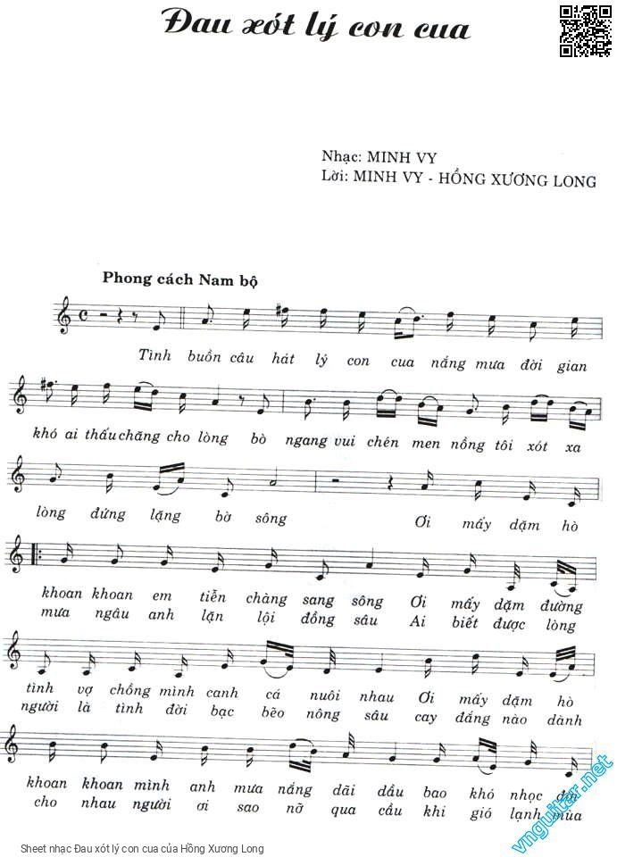 Hồng Xương Long Tình buồn câu hát lý con cua Nắng mưa đời gian khó ai thấu chăng cho lòng [PDF] [Sheet] [Lời H.A] [Mp4/Midi]