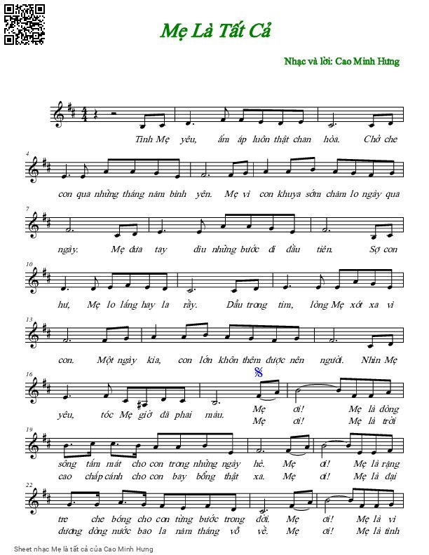 Cao Minh Hưng Tình Mẹ yêu ấm áp luôn thật chan hoà [PDF] [Sheet] [Lời H.A] [Mp4/Midi]