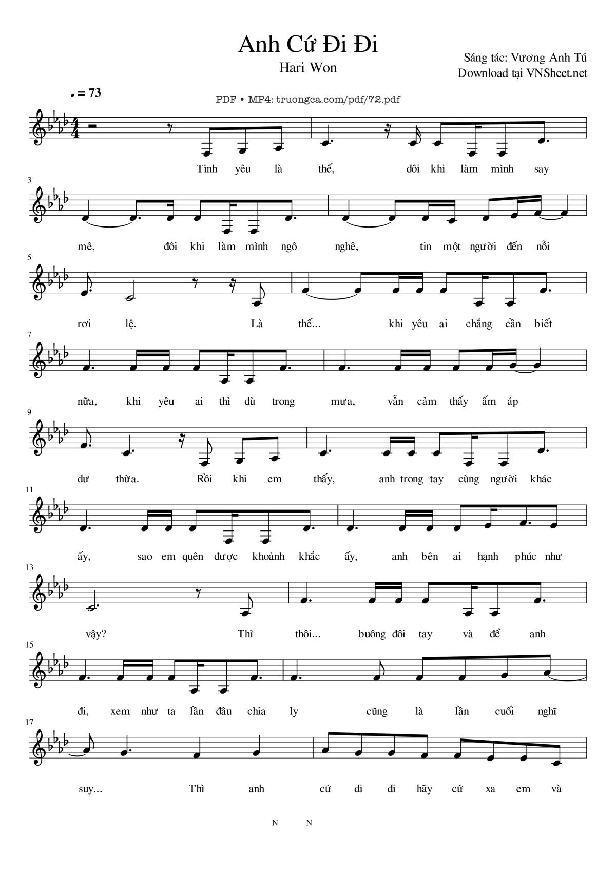 Phần nghe hát Anh cứ đi đi (Vương Anh Tú) được nhúng từ Youtube, Musescore hoặc link ngoài và chịu sự kiểm soát bản quyền của bên thứ ba đó, vì vậy có thể bị xóa hoặc chèn quảng cáo bất kỳ lúc nào. Nếu bạn không nghe - xem được ca sĩ hát tức là đã bị Youtube hoặc Musescore kiểm soát.