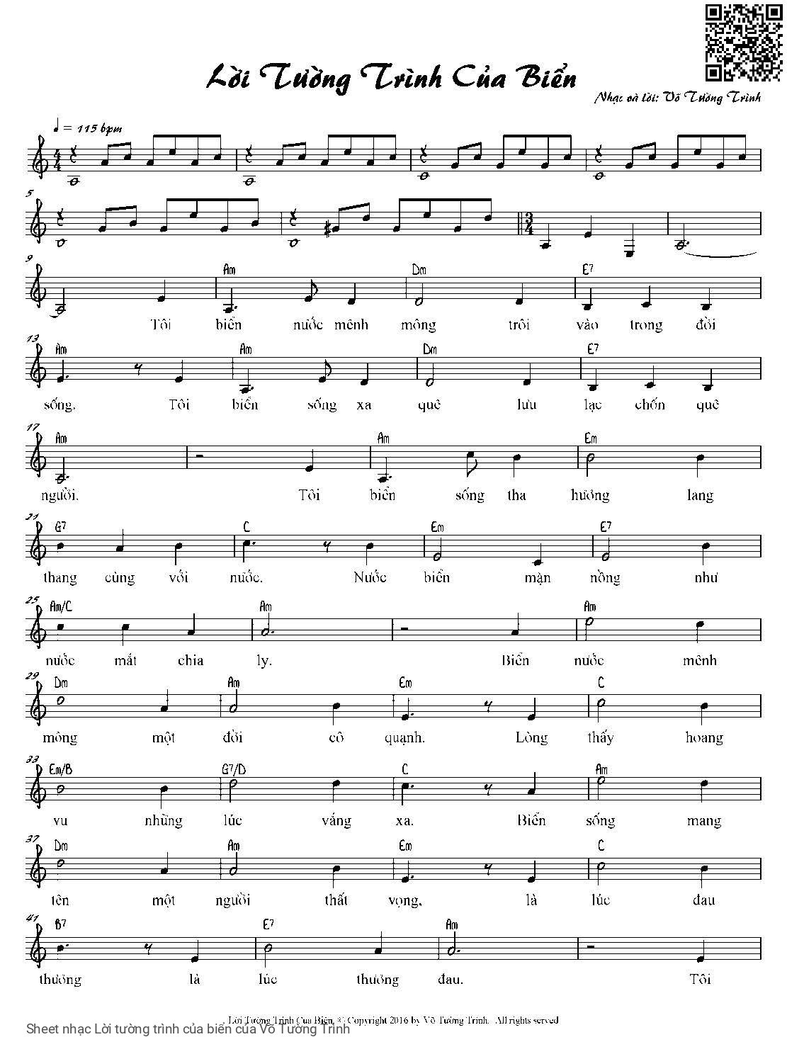 Tôi [Am] biển nước mênh [Dm] mông trôi [E7] vào trong đời [Am] sống.