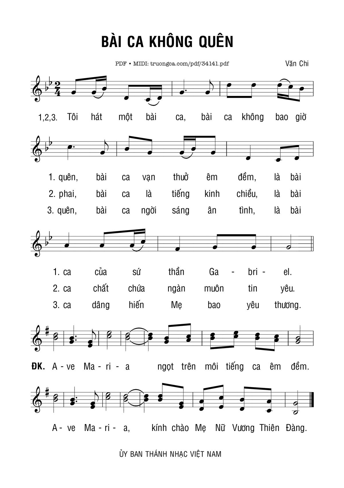 1. Tôi hát một bài ca, bài ca không bao giờ quên bài ca vạn thuở êm đềm là bài ca của sứ thần Ga-bri-en.