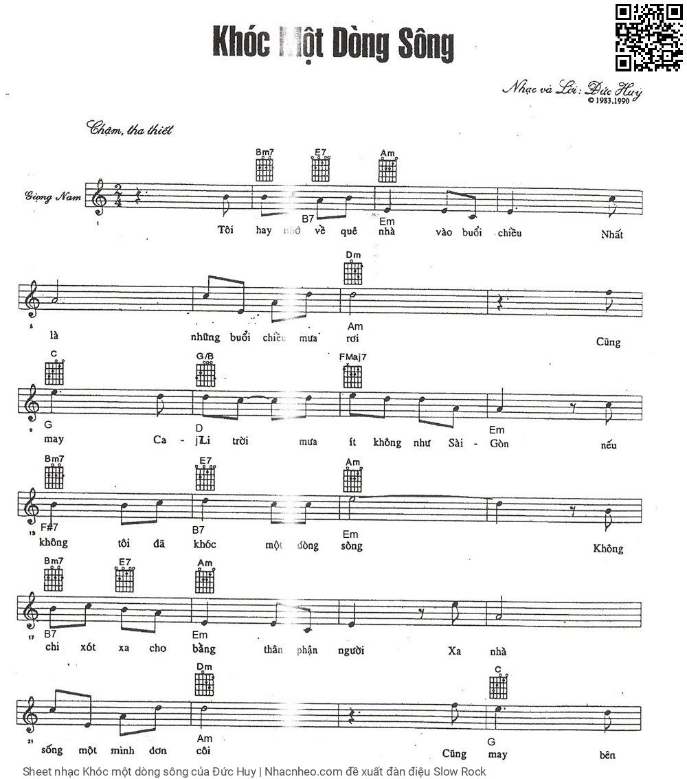 Phần nghe hát Khóc một dòng sông (Đức Huy) được nhúng từ Youtube, Musescore hoặc link ngoài và chịu sự kiểm soát bản quyền của bên thứ ba đó, vì vậy có thể bị xóa hoặc chèn quảng cáo bất kỳ lúc nào. Nếu bạn không nghe - xem được ca sĩ hát tức là đã bị Youtube hoặc Musescore kiểm soát.