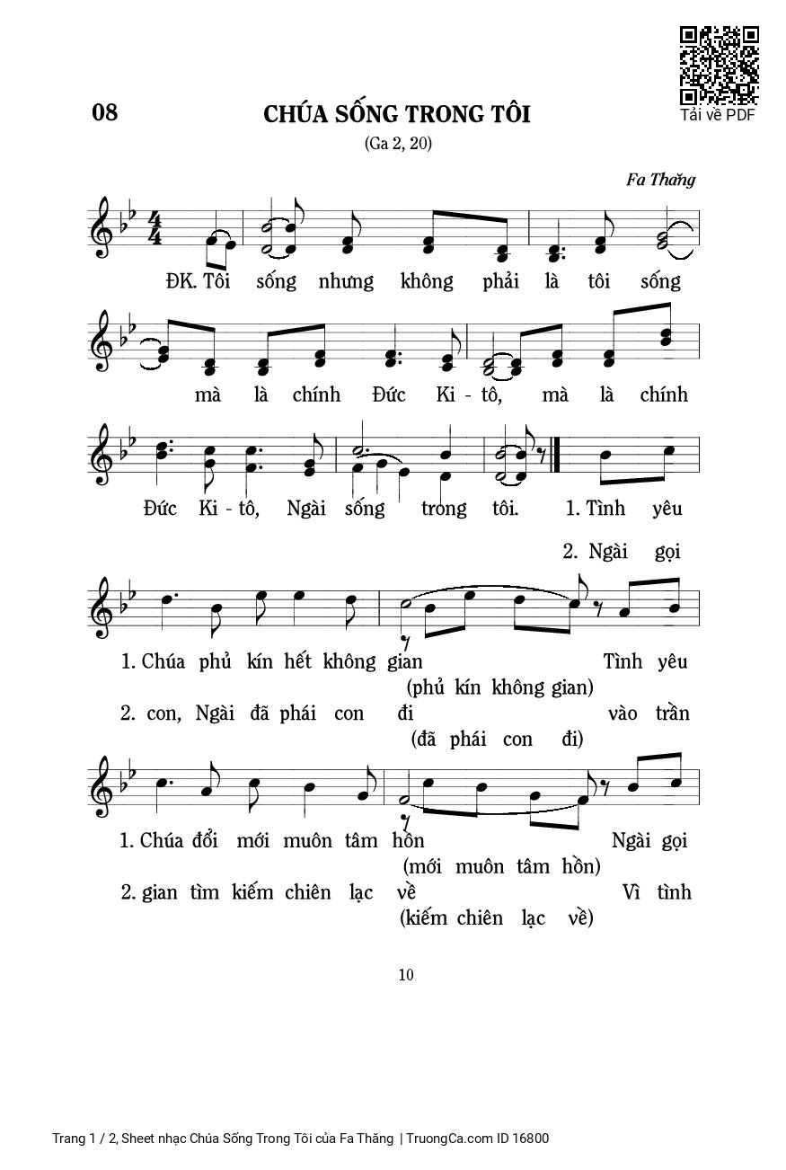Các sheet PDF tương tự Chúa Sống Trong Tôi:
