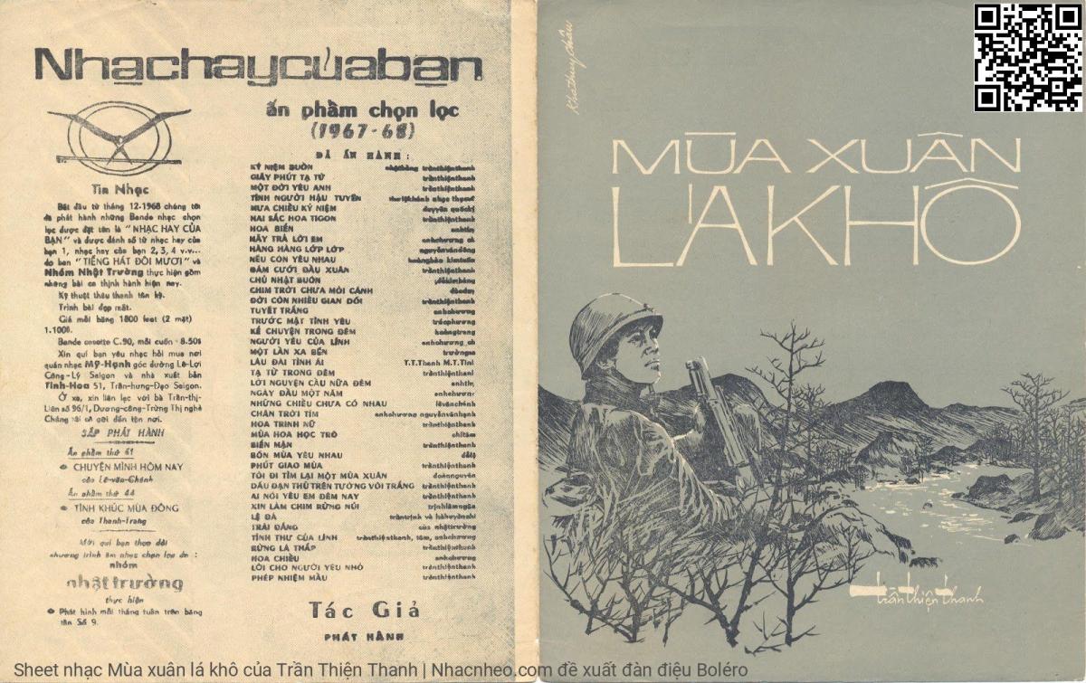 Phần nghe hát Mùa xuân lá khô (Trần Thiện Thanh) được nhúng từ Youtube, Musescore hoặc link ngoài và chịu sự kiểm soát bản quyền của bên thứ ba đó, vì vậy có thể bị xóa hoặc chèn quảng cáo bất kỳ lúc nào. Nếu bạn không nghe - xem được ca sĩ hát tức là đã bị Youtube hoặc Musescore kiểm soát.