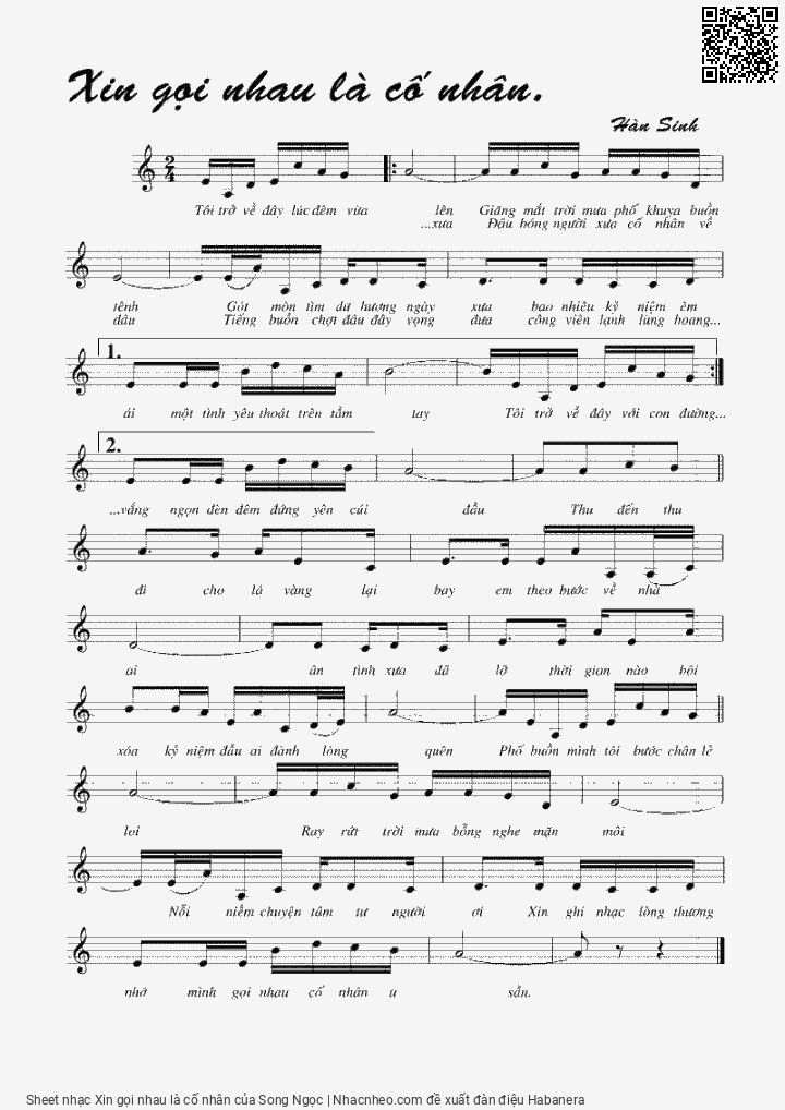 Phần nghe hát Xin gọi nhau là cố nhân (Song Ngọc) được nhúng từ Youtube, Musescore hoặc link ngoài và chịu sự kiểm soát bản quyền của bên thứ ba đó, vì vậy có thể bị xóa hoặc chèn quảng cáo bất kỳ lúc nào. Nếu bạn không nghe - xem được ca sĩ hát tức là đã bị Youtube hoặc Musescore kiểm soát.
