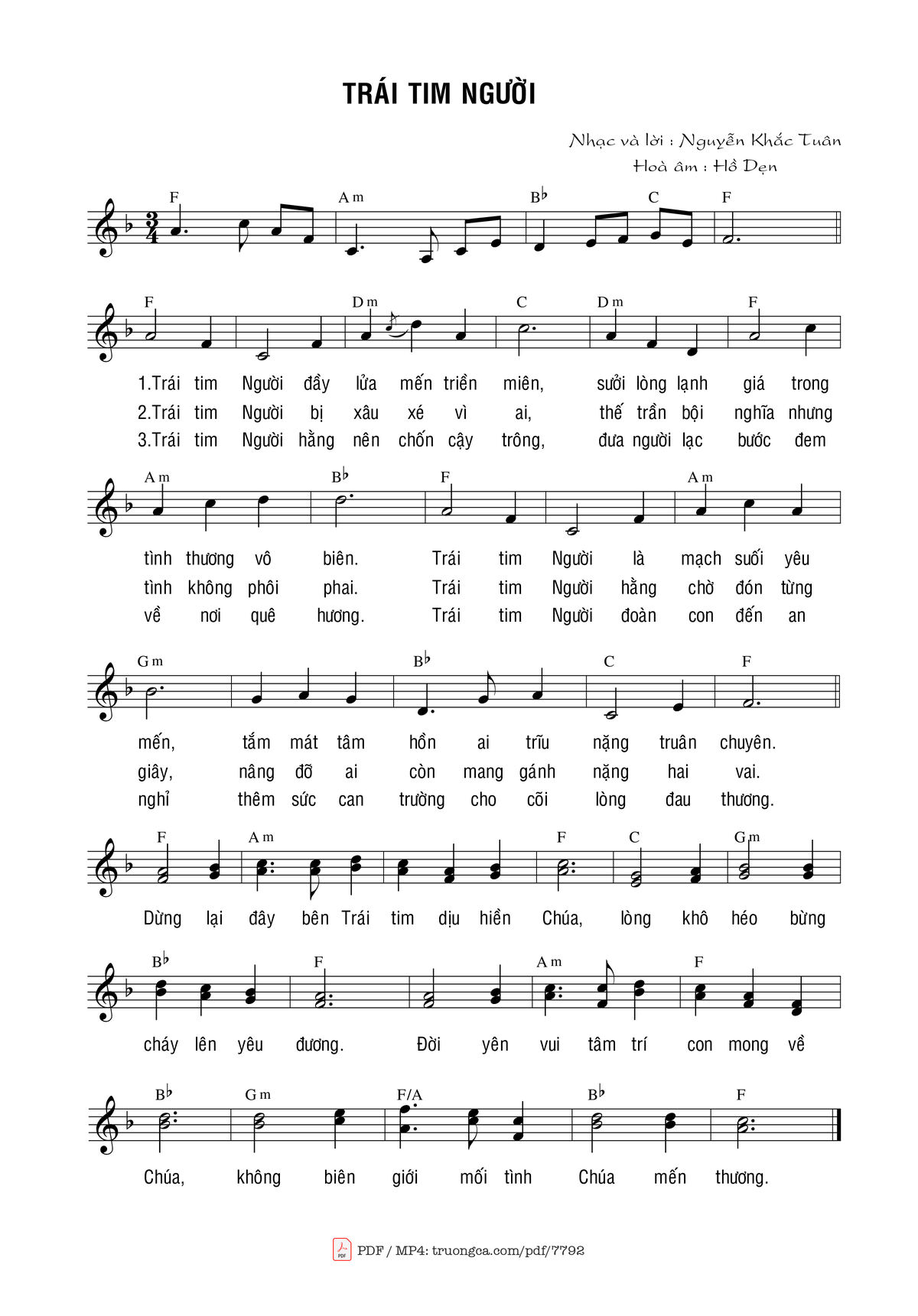 Nguyễn Khắc Tuần Trái Tim Người đầy lửa mến triền miên [PDF] [Sheet] [Lời H.A] [Mp4/Midi]