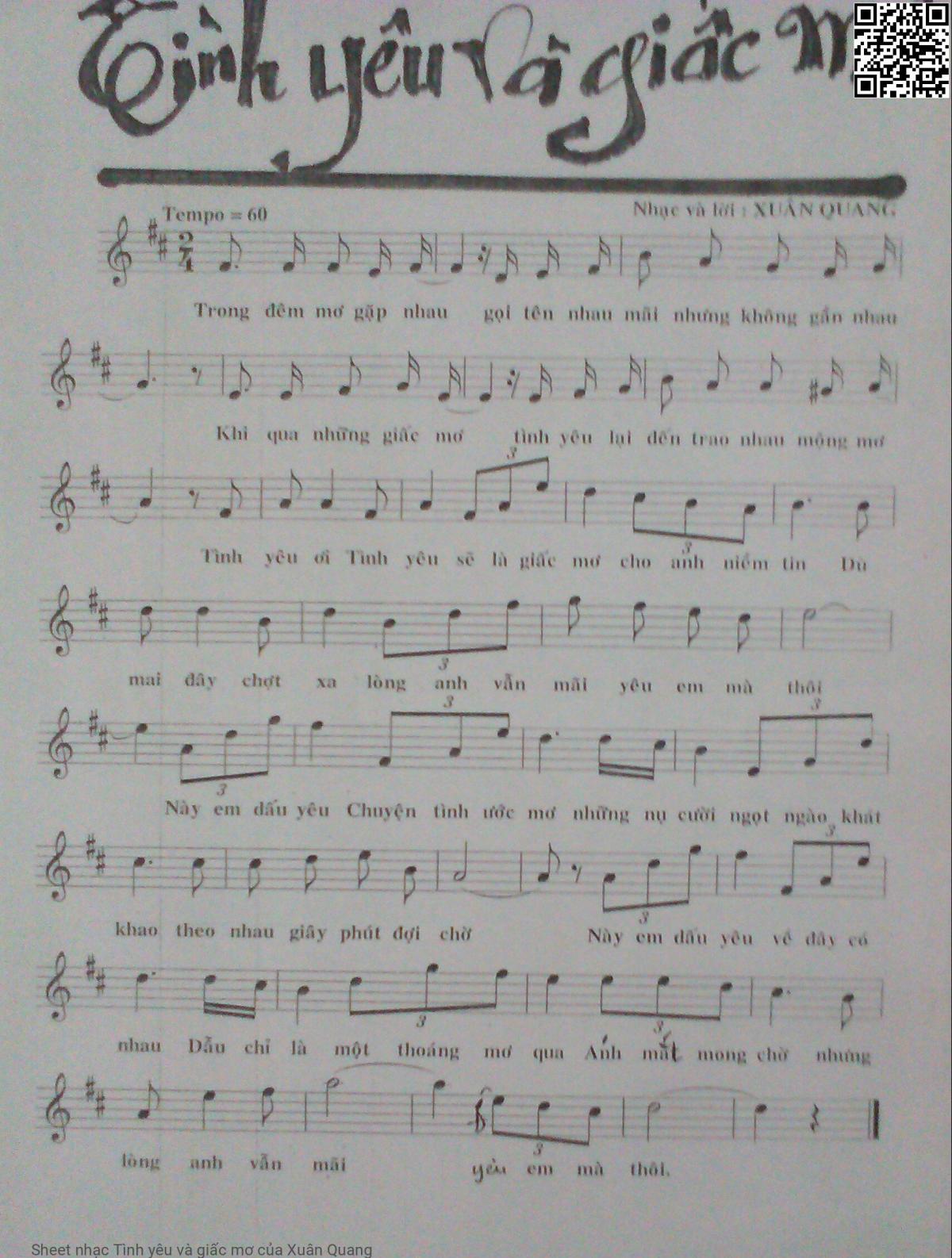Xuân Quang Trong đêm mơ gặp nhau Gọi tên em mãi nhưng không gần nhau [PDF] [Sheet] [Lời H.A] [Mp4/Midi]