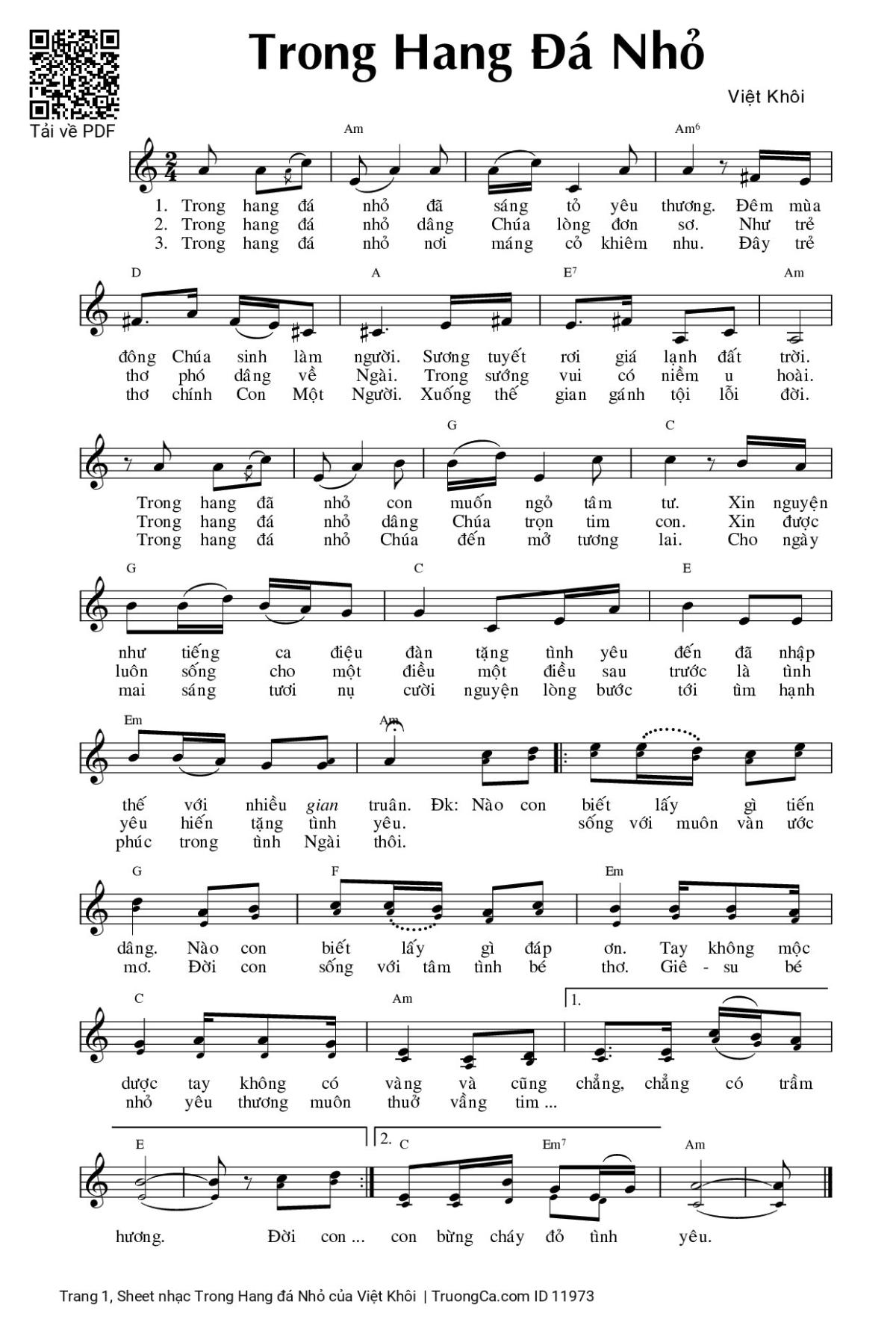 Việt Khôi Trong hang đá nhỏ đã sáng tỏ yêu thương [PDF] [Sheet] [Lời H.A] [Mp4/Midi]