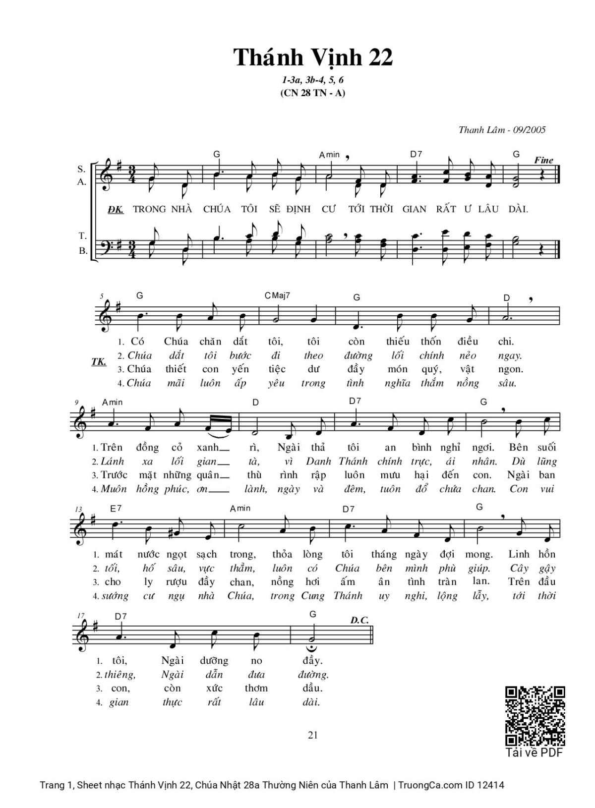 Thể loại 🌾 Nhạc Thánh Ca, 🌾 Thánh Vịnh - Đáp Ca, 🌾 Thánh ca Imprimatur, 🌾 Thánh Vịnh 22
