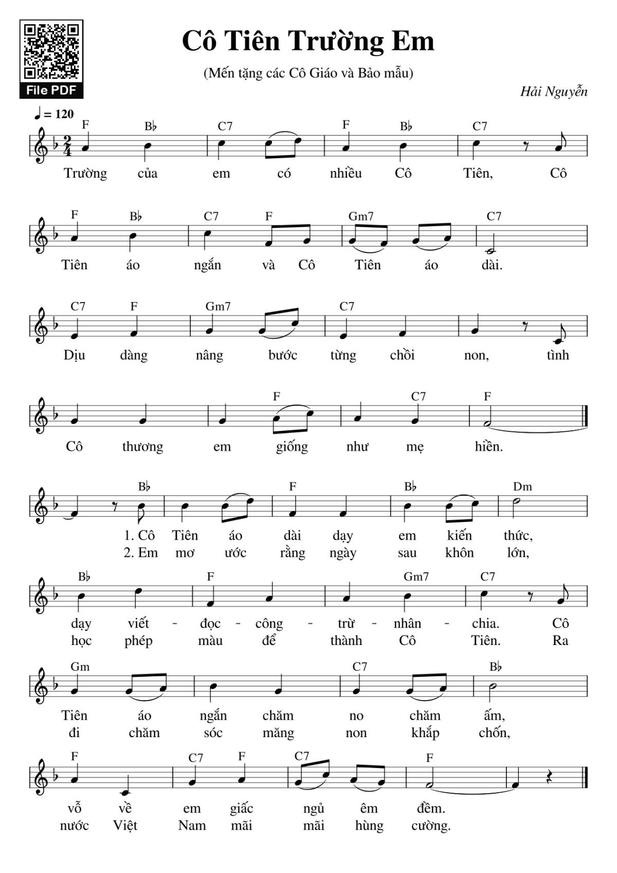 Hải Nguyễn trường của em có nhiều cô tiên [PDF] [Sheet] [Lời H.A] [Mp4/Midi]