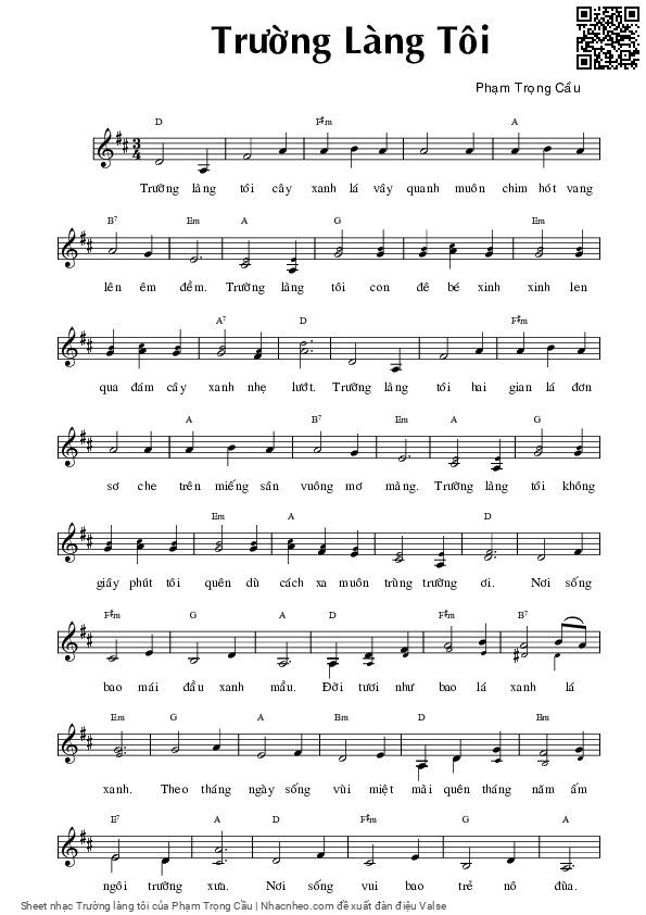 Phạm Trọng Cầu Trường làng tôi cây xanh lá vây quanh [PDF] [Sheet] [Lời H.A] [Mp4/Midi]