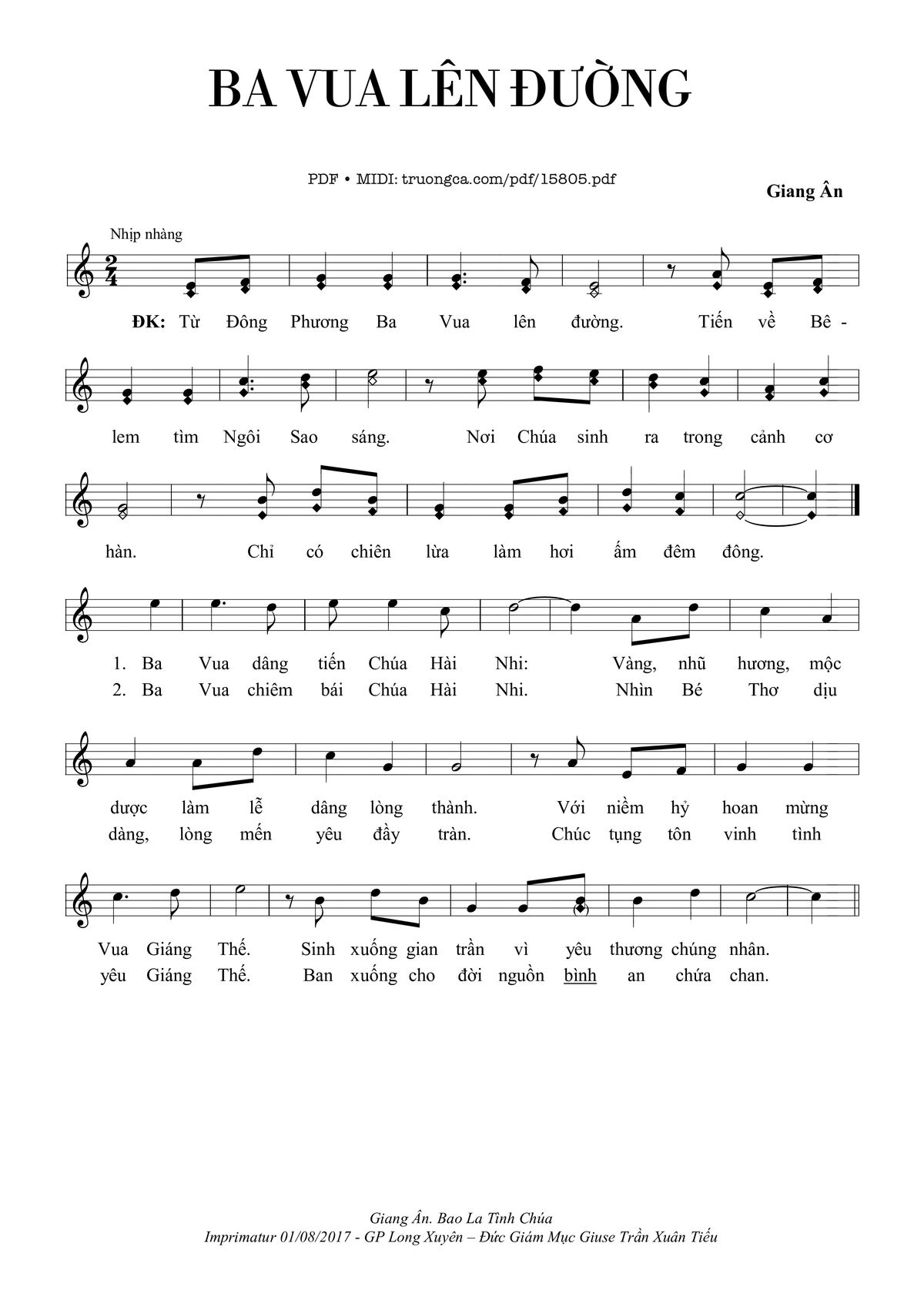 Giang Ân Từ Đông Phương Ba Vua lên đường Tiến về Bêlem tìm Ngôi Sao sáng [PDF] [Sheet] [Lời H.A] [Mp4/Midi]