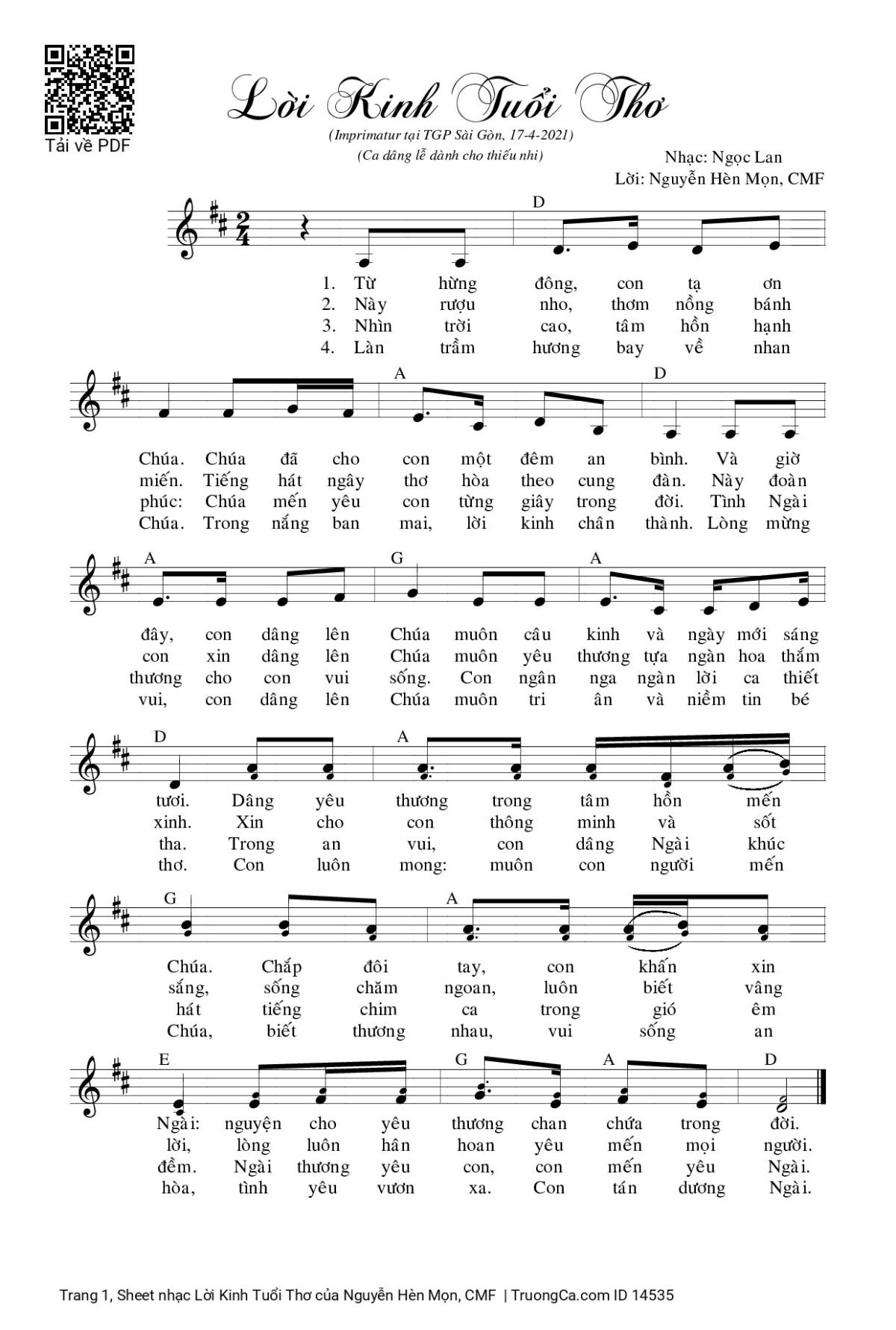 Các sheet PDF tương tự Lời Kinh Tuổi Thơ: