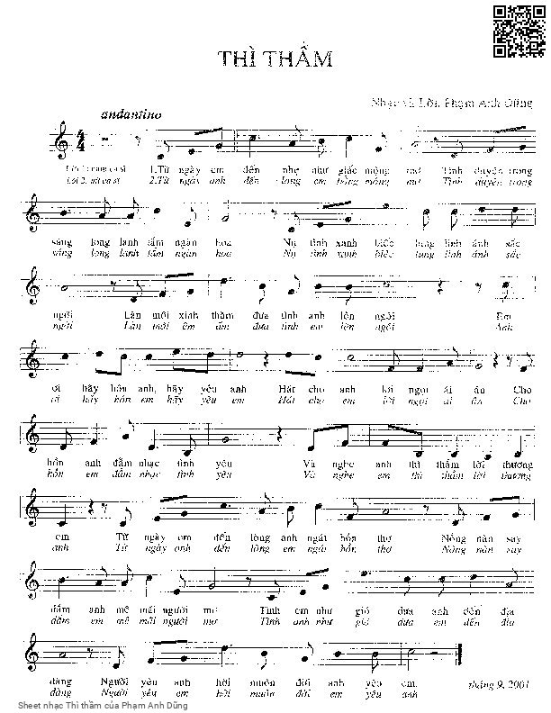 Phần nghe hát Thì thầm (Phạm Anh Dũng) được nhúng từ Youtube, Musescore hoặc link ngoài và chịu sự kiểm soát bản quyền của bên thứ ba đó, vì vậy có thể bị xóa hoặc chèn quảng cáo bất kỳ lúc nào. Nếu bạn không nghe - xem được ca sĩ hát tức là đã bị Youtube hoặc Musescore kiểm soát.