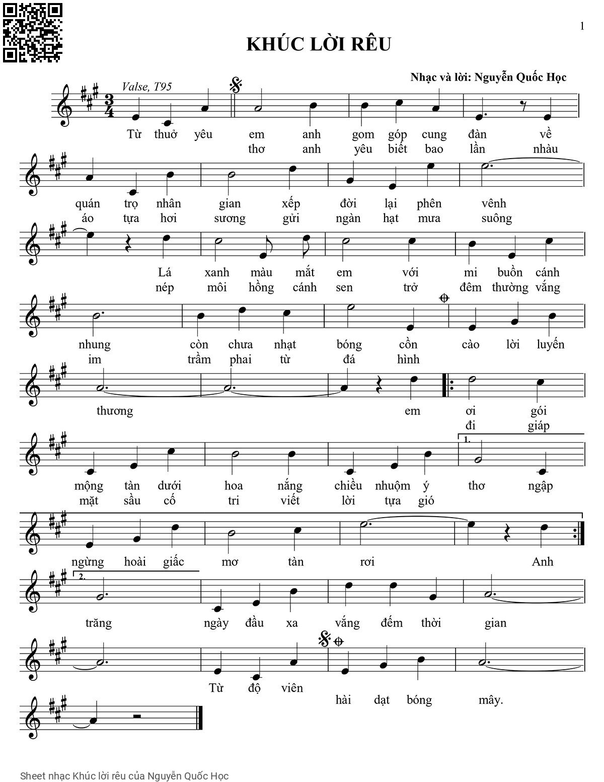 Nguyễn Quốc Học Từ thuở yêu em anh gom góp cung đàn Về quán trọ nhân gian xếp đời lại phên vênh [PDF] [Sheet] [Lời H.A] [Mp4/Midi]