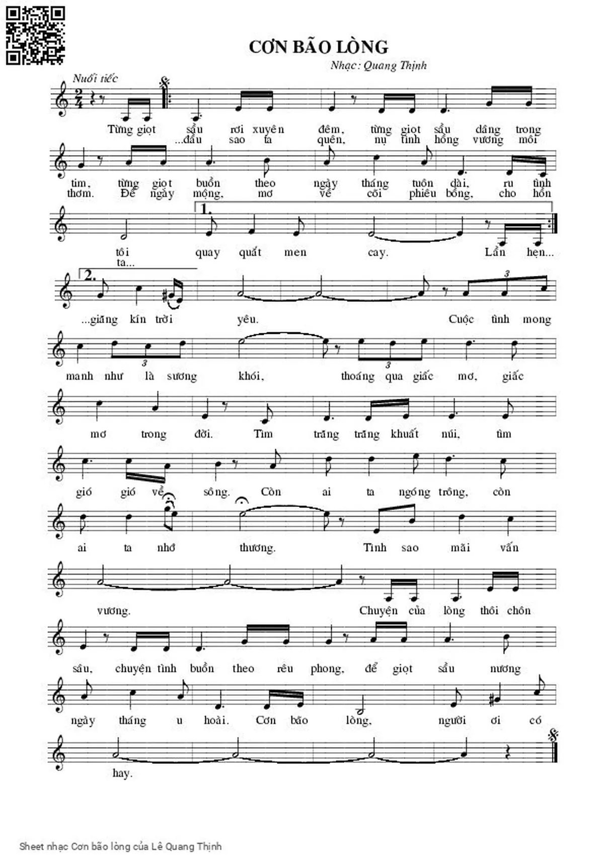 Lê Quang Thịnh Từng giọt sầu rơi xuyên đêm Từng giọt sầu dâng trong tim [PDF] [Sheet] [Lời H.A] [Mp4/Midi]