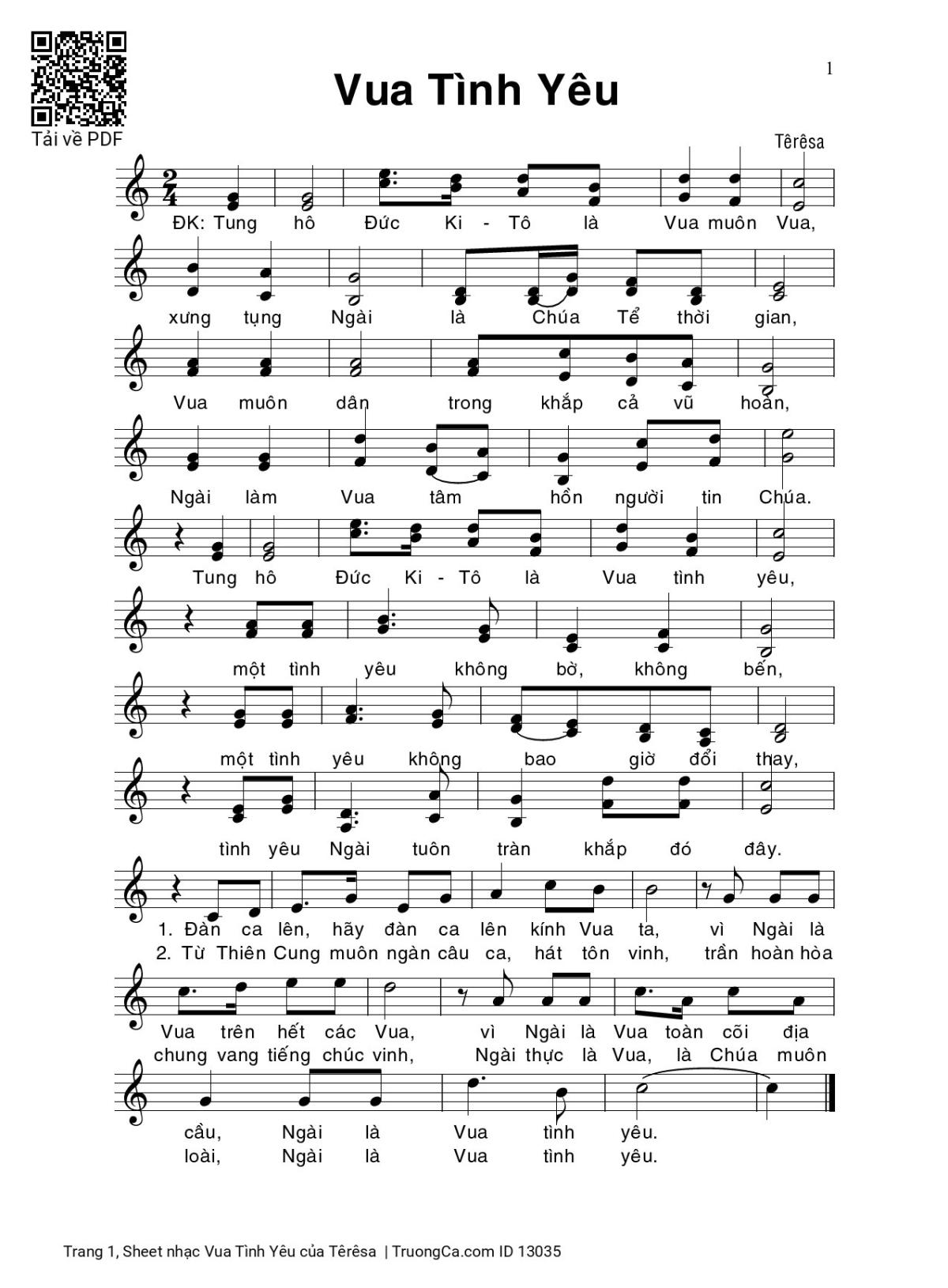 Phần nghe hát Vua Tình Yêu (Têrêsa) được nhúng từ Youtube, Musescore hoặc link ngoài và chịu sự kiểm soát bản quyền của bên thứ ba đó, vì vậy có thể bị xóa hoặc chèn quảng cáo bất kỳ lúc nào. Nếu bạn không nghe - xem được ca sĩ hát tức là đã bị Youtube hoặc Musescore kiểm soát.