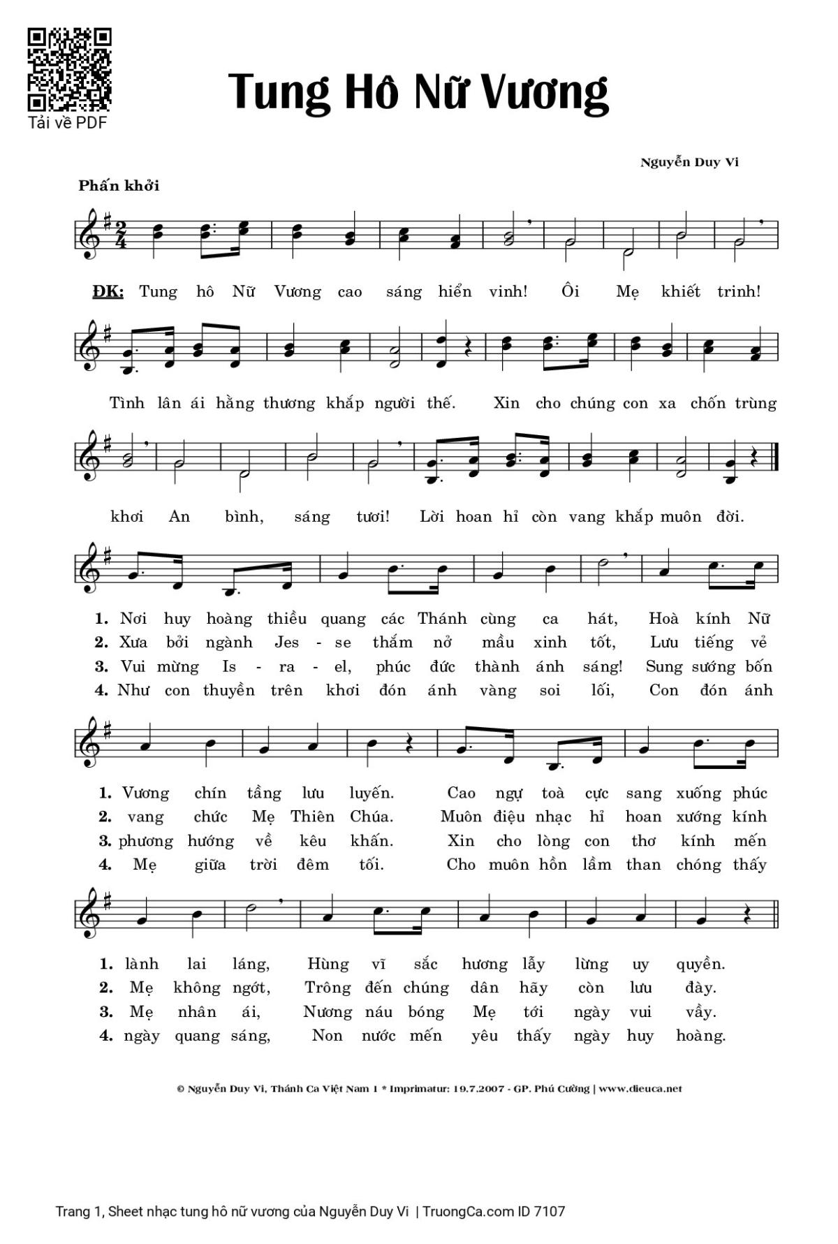 Nguyễn Duy Vi Tung hô Nữ Vương cao sáng hiển vinh Ôi Mẹ khiết trinh [PDF] [Sheet] [Lời H.A] [Mp4/Midi]