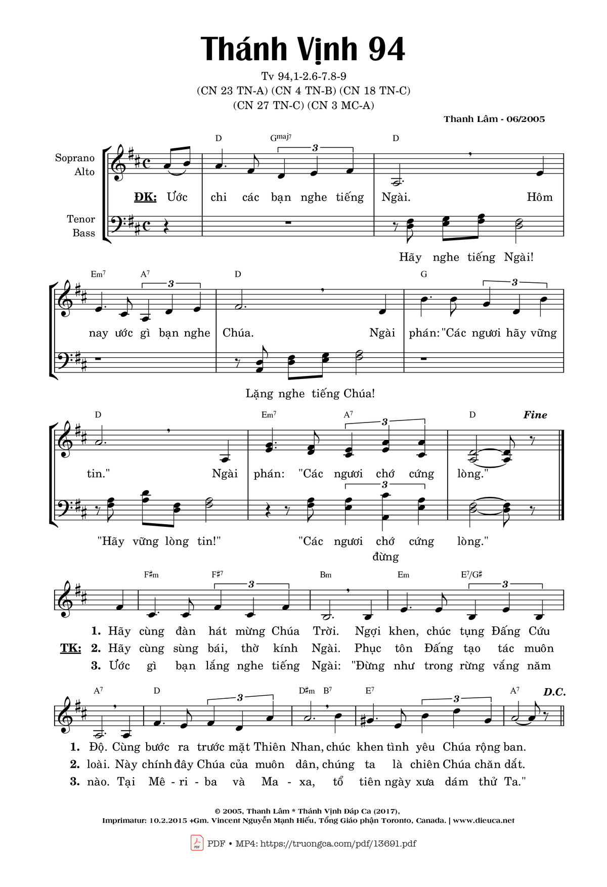 Thể loại 🌾 Nhạc Thánh Ca, 🌾 Thánh Vịnh - Đáp Ca, 🌾 Thánh ca Imprimatur, 🌾 Thánh Vịnh 94, ⛪ Chúa Nhật 18 Thường Niên C