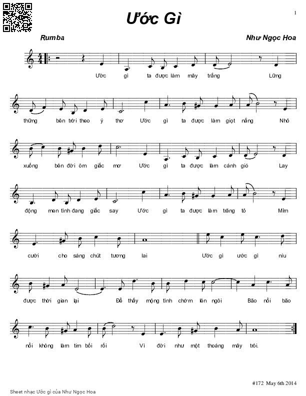 Như Ngọc Hoa Ước gì ta được làm mây trắng Lững thững bên trời theo ý thơ [PDF] [Sheet] [Lời H.A] [Mp4/Midi]