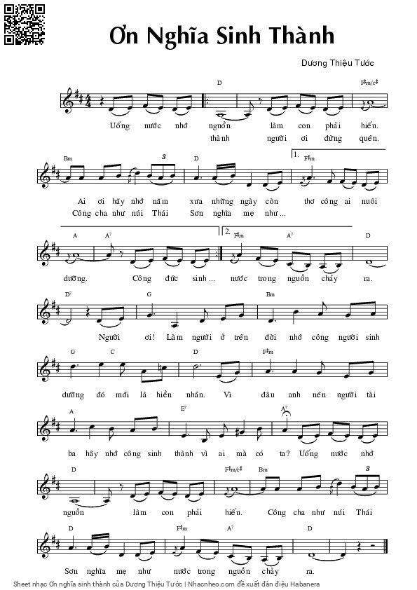 Dương Thiệu Tước Uống nước nhớ nguồn Làm con phải hiếu [PDF] [Sheet] [Lời H.A] [Mp4/Midi] [Lời bình - giai thoại]