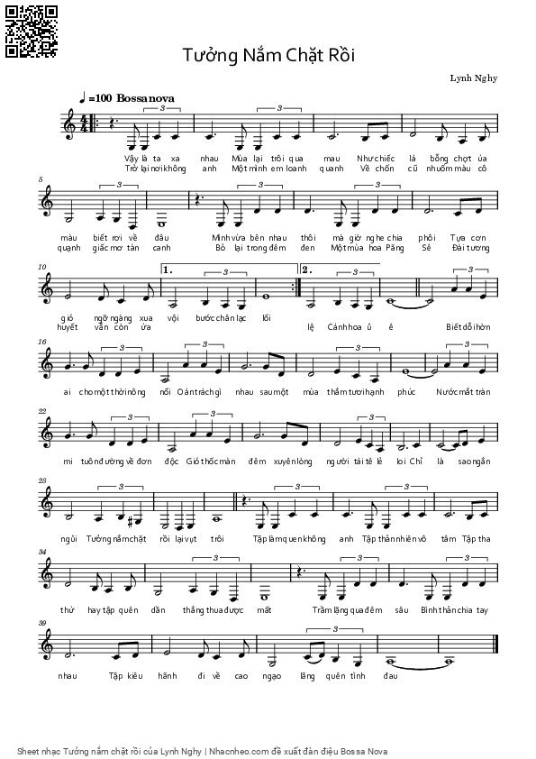 Phần nghe hát Tưởng nắm chặt rồi (Lynh Nghy) được nhúng từ Youtube, Musescore hoặc link ngoài và chịu sự kiểm soát bản quyền của bên thứ ba đó, vì vậy có thể bị xóa hoặc chèn quảng cáo bất kỳ lúc nào. Nếu bạn không nghe - xem được ca sĩ hát tức là đã bị Youtube hoặc Musescore kiểm soát.