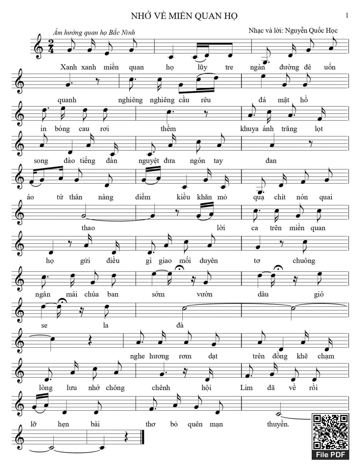 Nguyễn Quốc Học Xanh xanh miền quan họ Lũy tre ngàn đường đê uốn quanh [PDF] [Sheet] [Lời H.A] [Mp4/Midi]