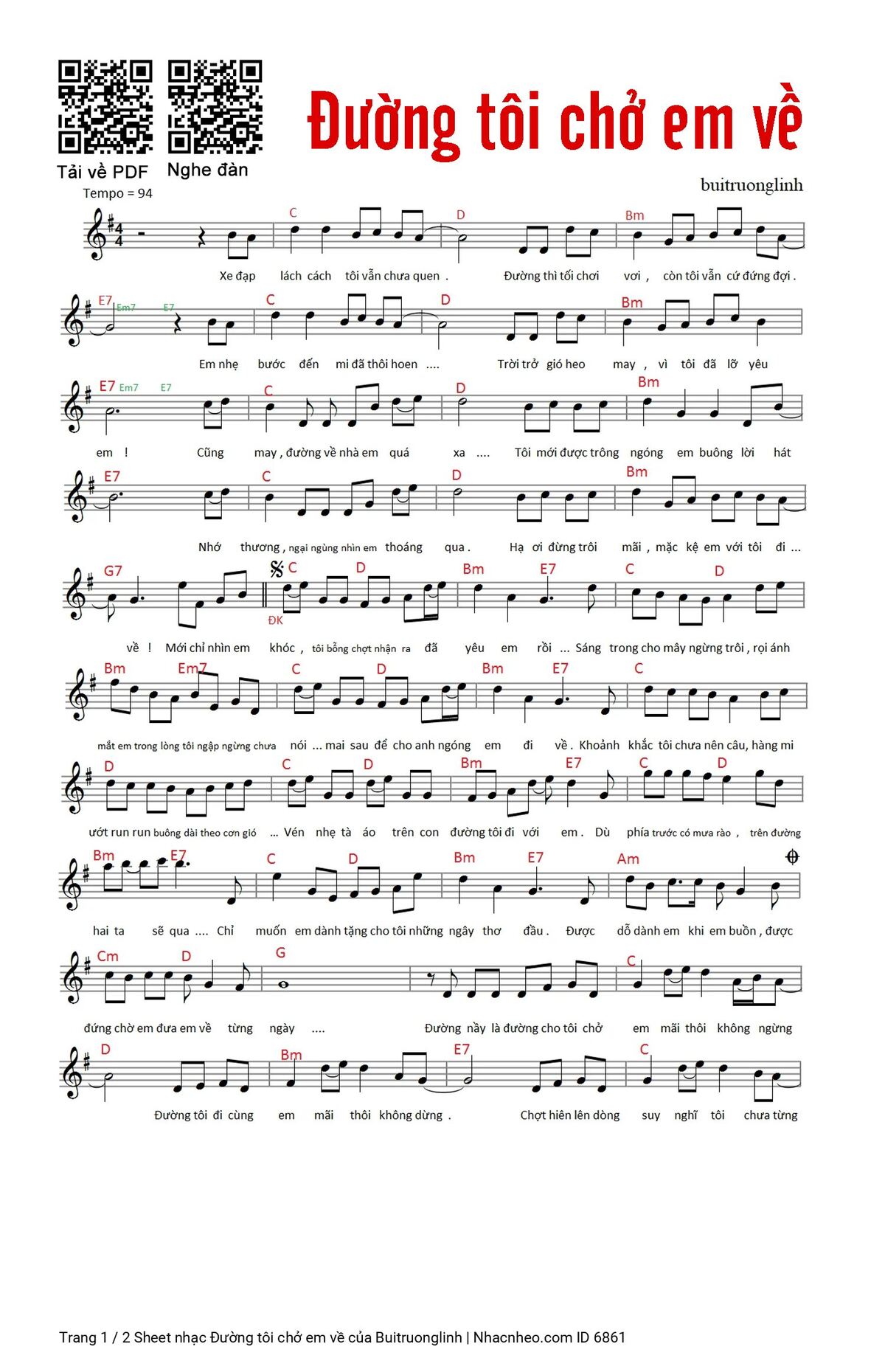 Buitruonglinh Xe đạp lách cách tôi vẫn chưa quen Đường thì tối chơi vơi còn tôi vẫn cứ đứng đợi [PDF] [Sheet] [Lời H.A] [Mp4/Midi]