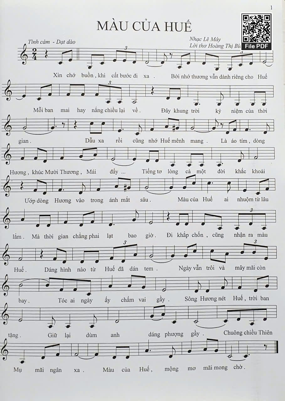 Lê Máy Xin chớ buồn khi cất bước đi xa Bởi nhớ thương vẫn dành riêng cho Huế [PDF] [Sheet] [Lời H.A] [Mp4/Midi]