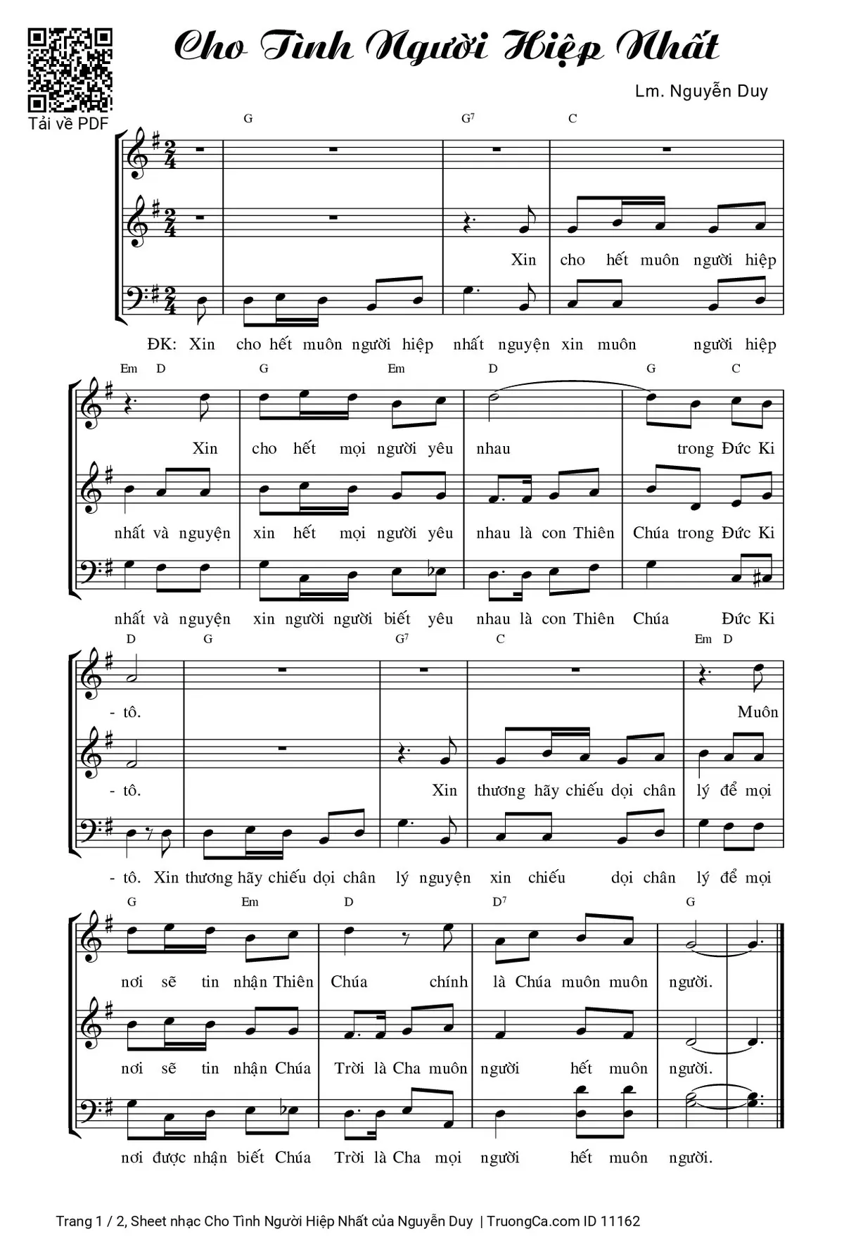Các sheet PDF tương tự Cho Tình Người Hiệp Nhất: