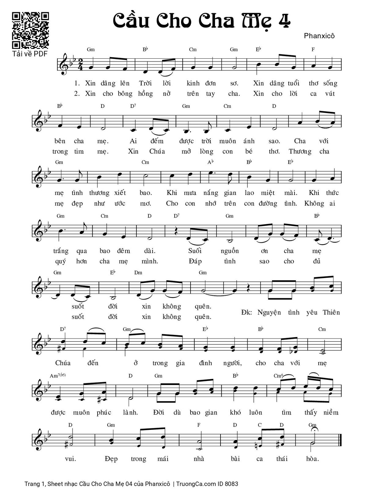 Các sheet PDF tương tự Cầu Cho Cha Mẹ 04: