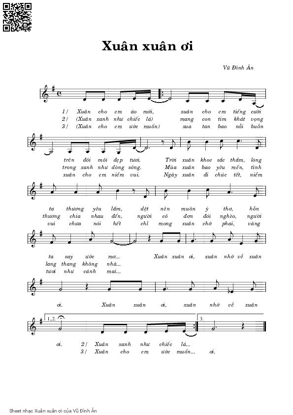 Vũ Đình Ân Xuân cho em áo mới xuân cho em tiếng cười trên đôi môi đẹp tươi [PDF] [Sheet] [Lời H.A] [Mp4/Midi]