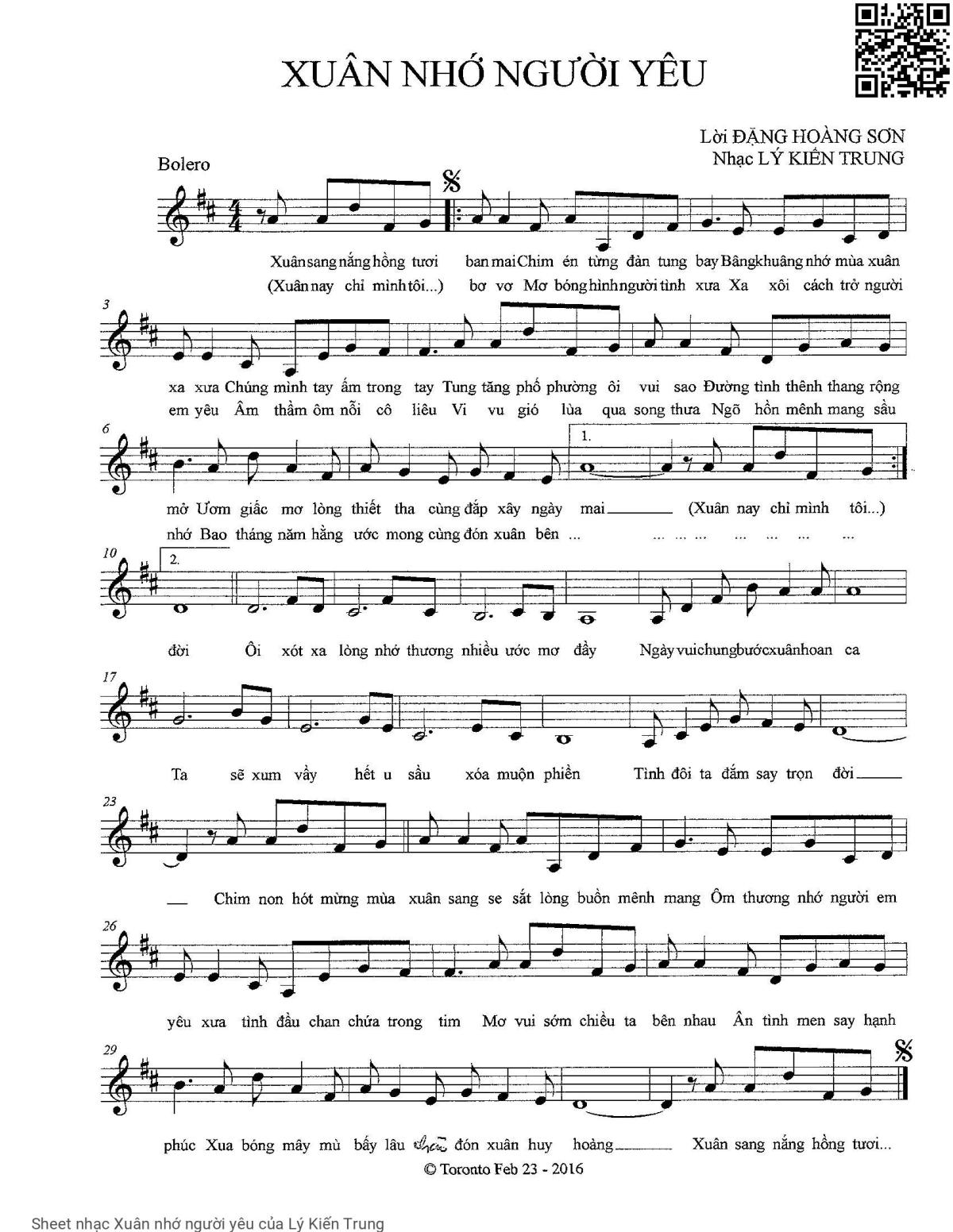 Các sheet PDF tương tự Xuân nhớ người yêu: