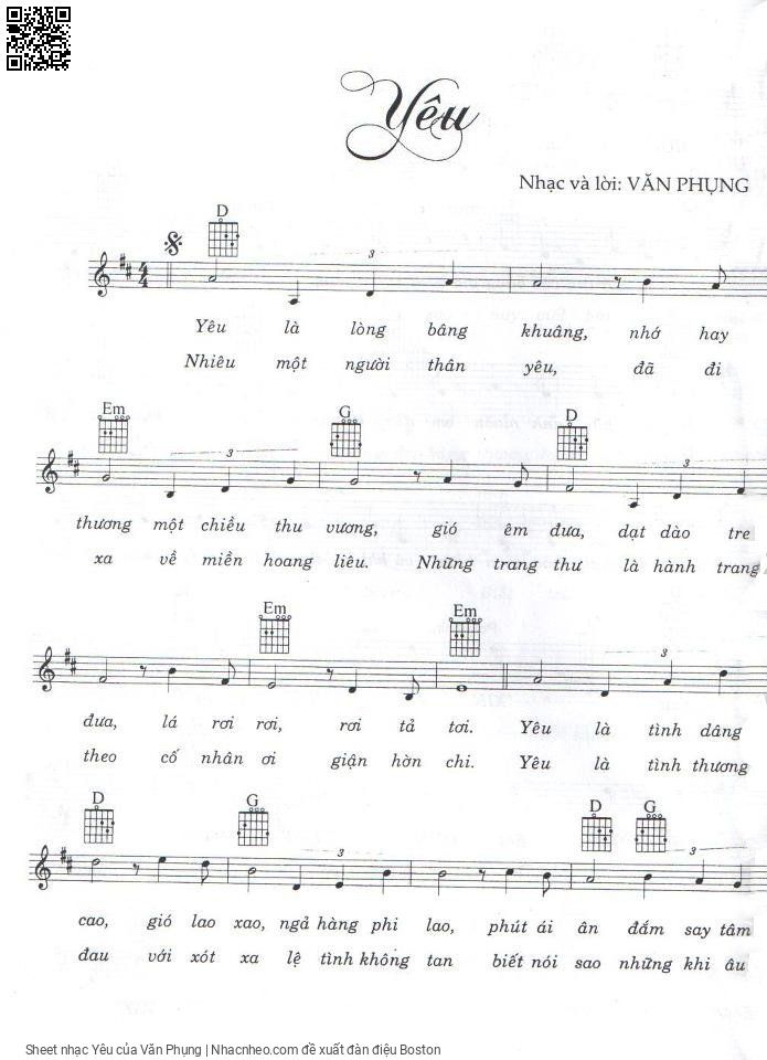Chọn nút dấu + để tăng tông lên nửa cung, nút dấu - để giảm tông xuống nửa cung. Rê chuột vào hợp âm để xem các thế bấm hợp âm của bài hát Yêu.