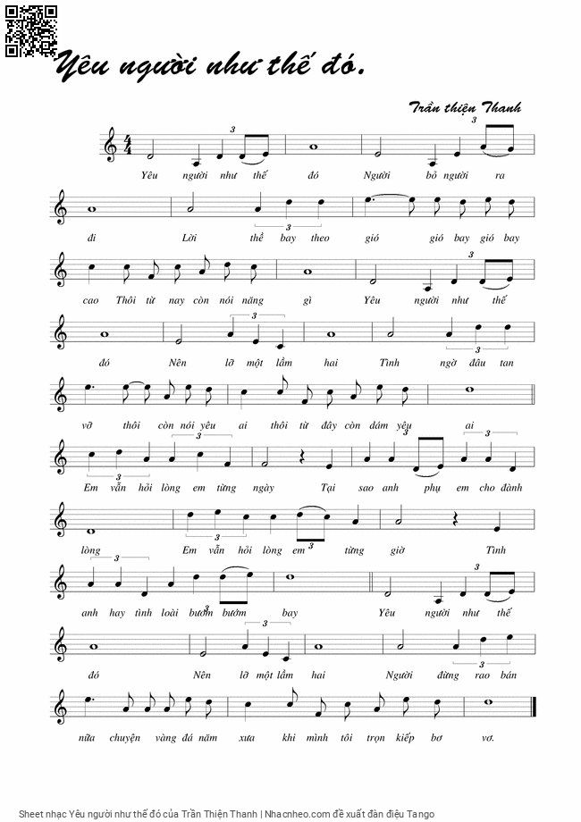 Trần Thiện Thanh Yêu người như thế đó Người bỏ người ra đi [PDF] [Sheet] [Lời H.A] [Mp4/Midi]